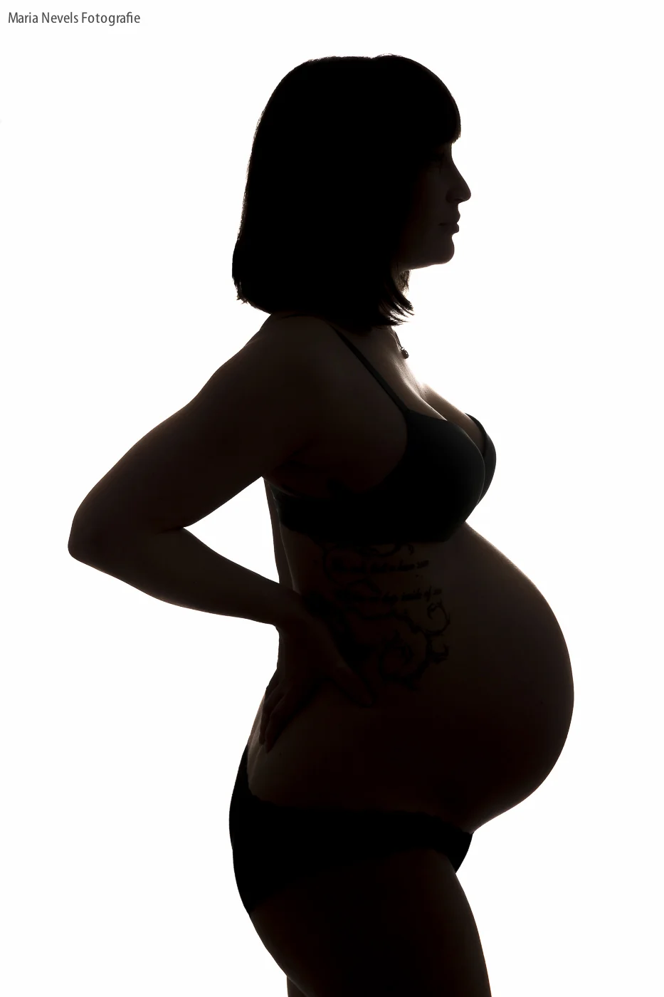 En de derde foto is van mijn eerste zwangerschapsfotoshoot in de studio, het mooie silhouette van een hoogzwangere Janneke.